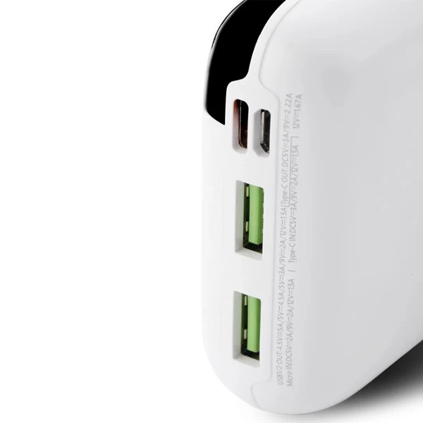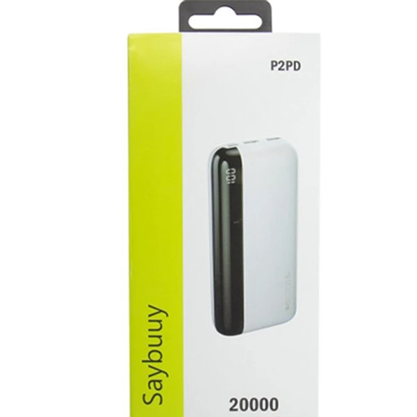پاوربانک ۲۰۰۰۰ Saybuuy مدل: P۲PD ابعاد: ۲۹x۴۱.۴x۱۴۹ میلیمتر وزن: ۴۲۵g ولتاژ جریان ورودی: ۳A-۵V DC ولتاژ جریان خروجی: تشخیص اتوماتیک ۳A/۵W توان خروجی: ۲۲.۵ وا ظرفیت خروجی:۱۲۰۰۰ باتری: لیتیوم پلیمری تعداد درگاه: ۴ دارای مانیتور نمایشگر درصد شارژ SCHNELLES AUFLADEN . QC+PD . ۲۲.۵W